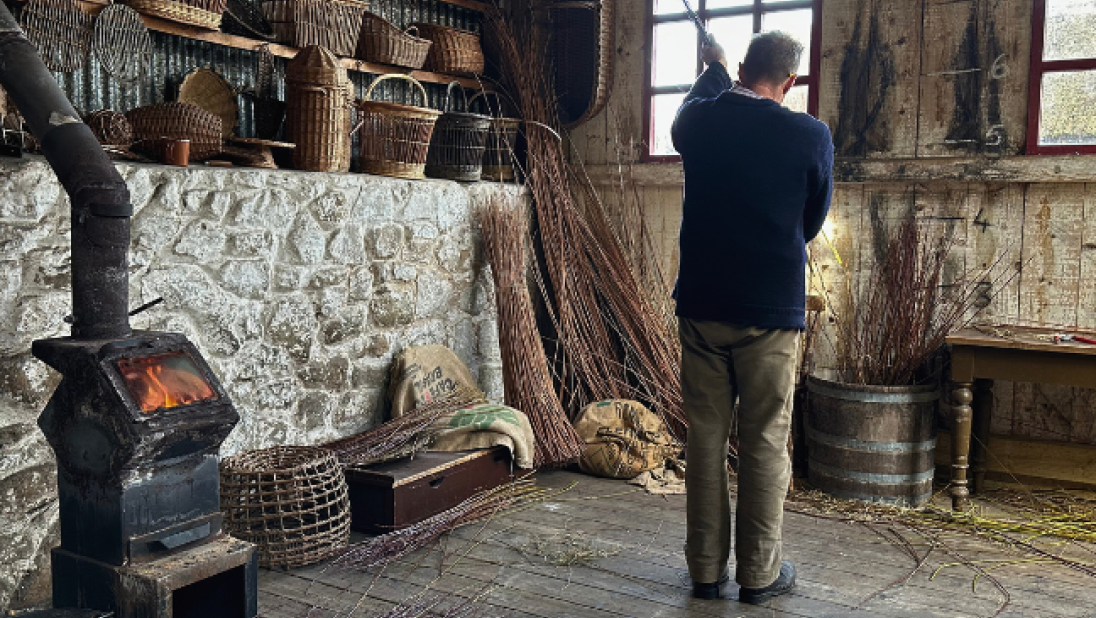 Bob harvests around ten varieties of willow at the Folk Museum. The difference in these varieties can be seen in their colours and size.